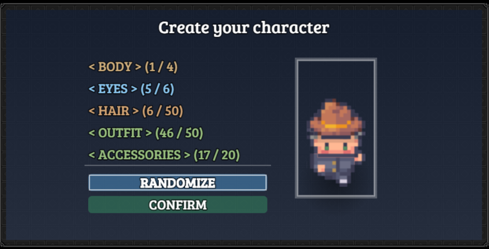 Randomize button to generate complete character looks in one press